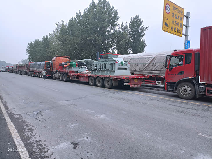輥體φ1×1.2m的雙輥破碎機開始發(fā)貨運輸