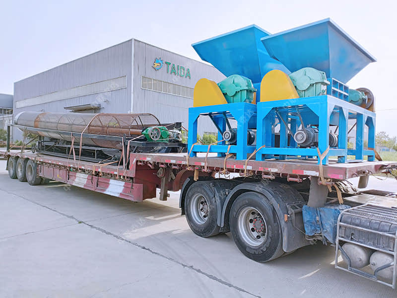 600型撕碎機(jī),配套10米長交易滾筒篩發(fā)貨