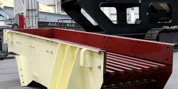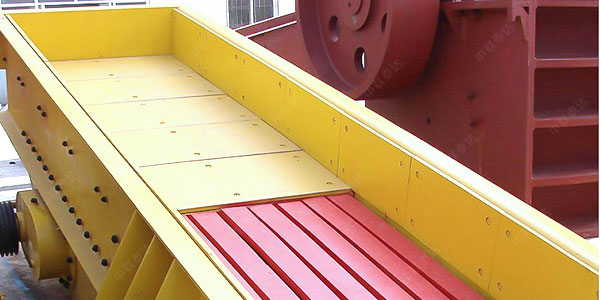 振動給料機又稱振動喂料機。該系列振動給料機,是專為破碎篩分中粗破碎機前均勻輸送大塊物料而設(shè)計的新型振動給料機。該振動給料機采用雙偏心軸激振器的結(jié)構(gòu)特點,保證設(shè)備能承受大塊物料下落的沖擊,給料能力大。在生產(chǎn)流程中可以把塊狀、顆粒狀物料從貯料倉中均勻、定時、連續(xù)地給到受料裝置中去,從而防止受料裝置因進料不均而產(chǎn)生死機的現(xiàn)象,延長了設(shè)備使用壽命。