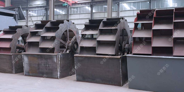 電機(jī)通過(guò)三角帶、減速機(jī)、齒輪減速后帶動(dòng)葉輪緩慢轉(zhuǎn)動(dòng),砂石由給料槽進(jìn)入洗槽中,在葉輪的帶動(dòng)下翻滾,并互相研磨,除去覆蓋砂石表面的雜質(zhì),同時(shí)破壞包覆砂粒的水汽層,以利于脫水;同時(shí)加水形成強(qiáng)大水流,及時(shí)將雜質(zhì)及比重小的異物帶走,并從溢出口洗槽排出,完成清洗作用。干凈的砂石由葉片帶走,最后砂石從旋轉(zhuǎn)的葉輪倒入出料槽,完成砂石的清洗作用。